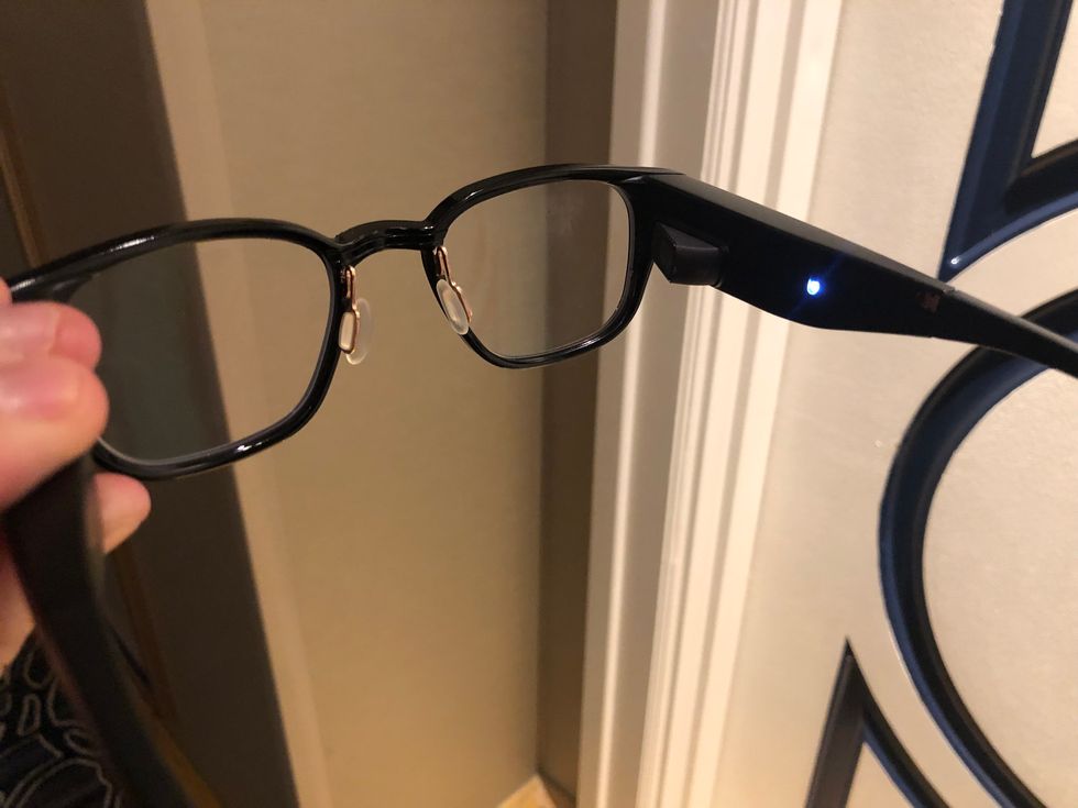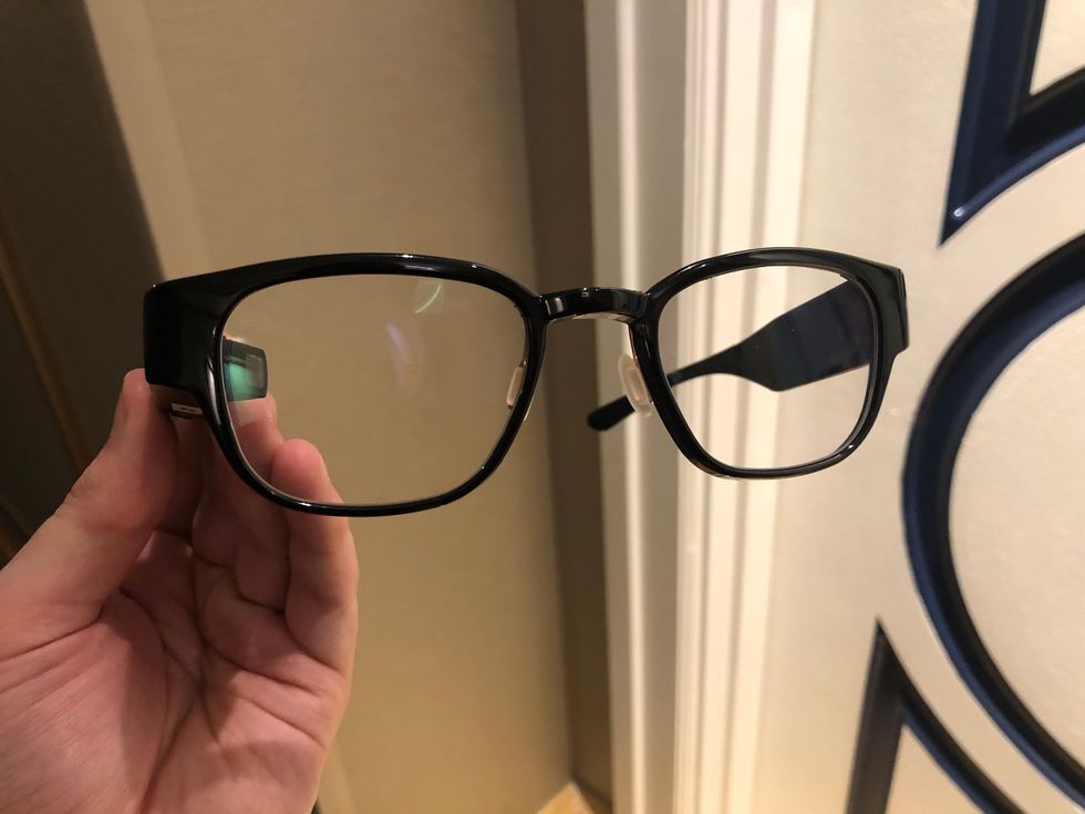 They're a little big, but I get the idea. They look and feel exactly like a pair of regular glasses. There's no bulky touch pad, no camera, and the projector is almost completely hidden behind the right-hand lens, onto which is projects the Focals' user interface.