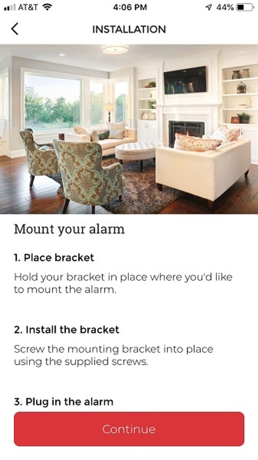 Once the wires are connected, place the alarm over the mounting bracket and twist in place. Once securely tightened, turn the power on and a blue light will display and a voice command will alert you that it's beginning to pair your device. Follow the instructions in the app to get your alarm paired to your home Wi-Fi and Apple HomeKit.