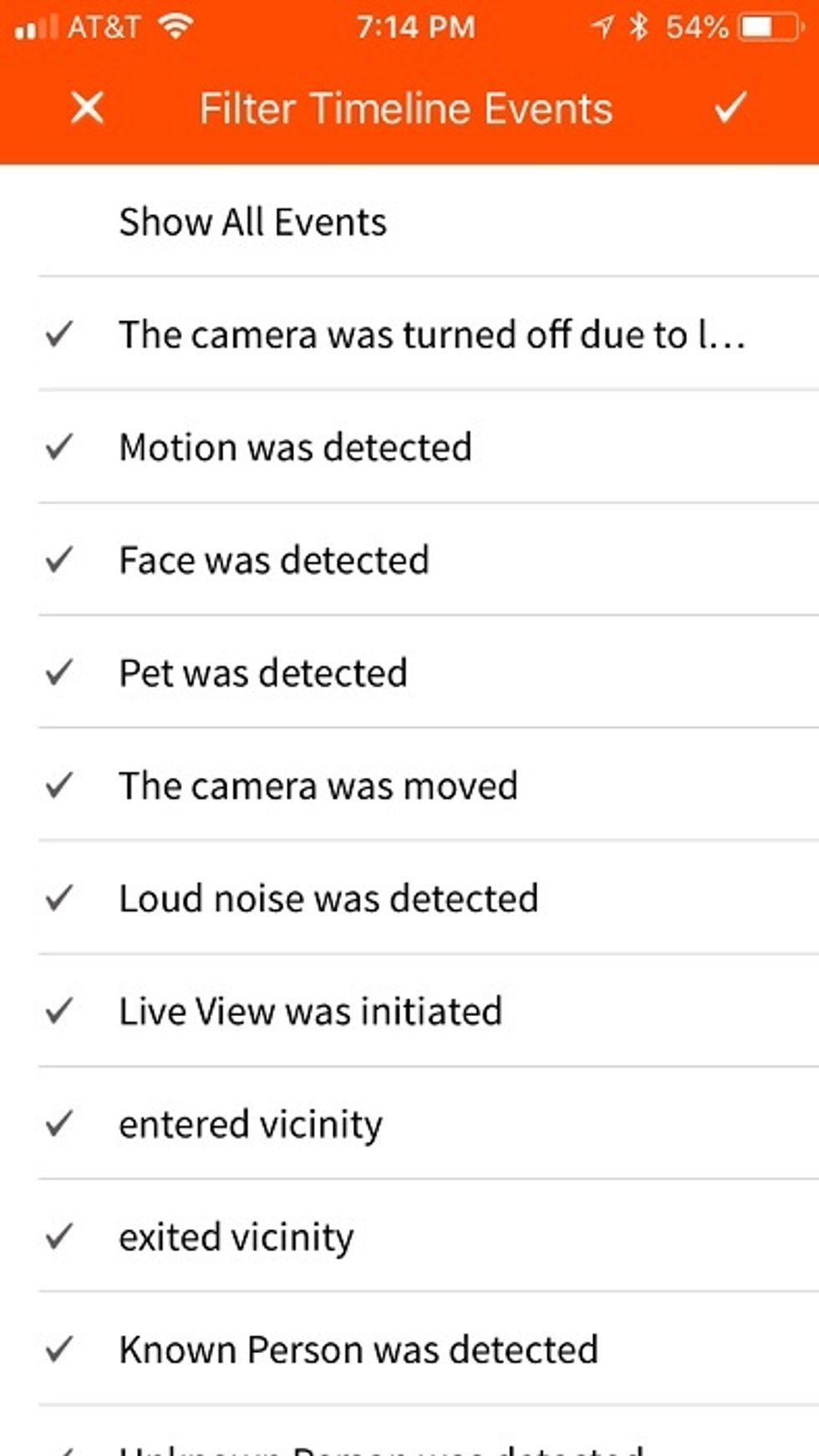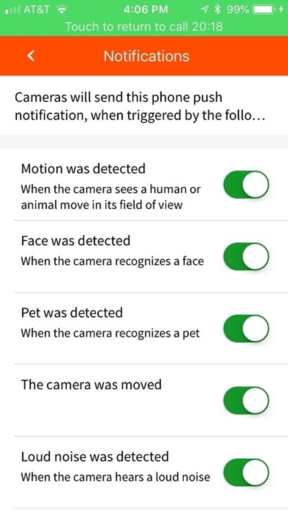 Like most good security cameras, Ooma Butterfleye app has several good features around letting you know if something is wrong. You get alerts when Butterfleye recognizes someone's face that's been tagged, as well as a pet. You also get notified when a loud noise is detected, along with any motion. You can also schedule notifications when a face, motion and loud noise is detected, turn off notifications around pets or known people, and also filter timeline events by selecting and de-selecting the items you want to filter in the app. Finally, you can turn off notifications when a camera is being moved, and filter videos from a specific day.