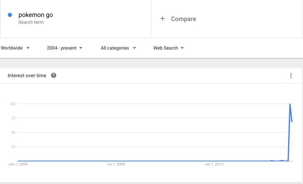 Pokémon What? Just as quickly as the crazy Pokémon Go took off, the frenzy appears to be waning. Bloomberg cites stats that show engagement is taking a downturn. And a recent scan of Google Trends (shown below) shows the quick spike up, but also the swift crash down. At one point, more people were playing Pokémon Go than tweeting every day, or downloading Tinder. That's not to say Pokémon Go users have abandoned their Pikachu's or Eevee's. But come the winter, we expect something else to grab hold of your imagination.