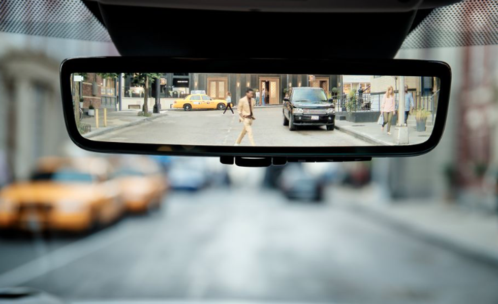 Another camera is fitted to the top of the rear windshield, which send a live video feed to the interior mirror, which contains a full-length, high definition display. The mirror can be used normally, but for times when the view might be obscured - such as when carrying large items in the truck, or three rear-seat passengers - a button press replaces the mirror with a feed from the camera.