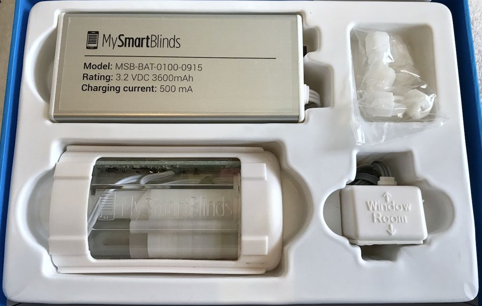 Essentially, the MySmartBlinds installation involves removing your blinds from your window and replacing the cord mechanism with the MySmartBlinds' motor, battery, and either a solar panel ($45) or an AC rechargeable connection ($14) for power, then literally cutting the cord. Once you re-mount your blinds, you then pair them to the MySmartBlinds app.