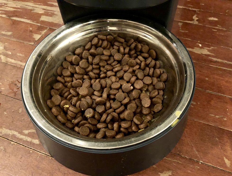 We filled the bowl with our dog's preferred chow — which is small-sized kibble and has worked well on testing other smart pet feeders. And we were right: the conveyer belt had no trouble bringing the food up and into the bowl.