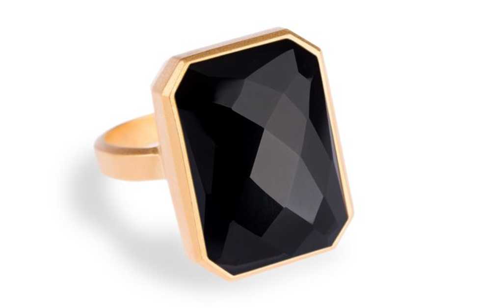 Six precious and semi-precious gemstones make up the collection with names from romance novels: Daydream (rainbow moonstone), Wine Bar (pink sapphire), Stargaze (black onyx), Into the Woods (emerald), Out to Sea (lapis) and Dive Bar (quartz threaded with tourmaline). You can even order the device by ring size. I went with Daydream — frankly because it was the only one available when I pre-ordered the device.