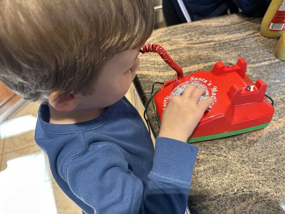 After setup, your child can simply lift the handset, push the Santa button on the rotary dial, and call Santa directly from the North Pole. Note, you will hear a ringtone play before Santa picks up. Once connected, Santa will greet you, and you can start your conversation. When done, hang up the phone.