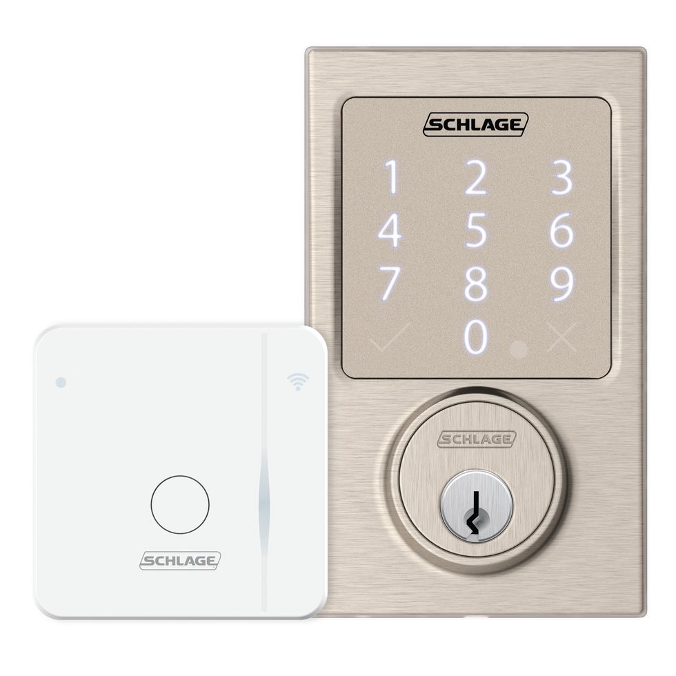 With most smart locks, if a user wants remote access from anywhere, they need to either connect their lock to the Internet. There are two ways to do this: connect your lock to a connected hub, like Apple HomeKit or use the smart lock manufacturer's connected Wi-Fi adapter. Schlage offers both solutions today. You can use Apple HomeKit or the Schlage Sense Wi-Fi Adapter. If you use Schlage Sense Wi-Fi adapter, it will help connect your Schlage Sense lock to Alexa. This all-in-one connection makes the Schlage Sense Smart Deadbolt an ideal choice for consumers who are not quite ready for a full-scale smart home, but would like to experience the convenience and benefits these solutions offer. However, if you want to go the connected hub route, consumers can select the Schlage Connect™ Touchscreen Deadbolt, which integrates with Amazon Alexa through Wink or Samsung SmartThings. The Wi-Fi Adapter, a small wall plug-in that must be placed within 40 feet of the smart lock, provides added functionality, such as allowing consumers to access their locks from anywhere in the world, directly through the Schlage Sense app.