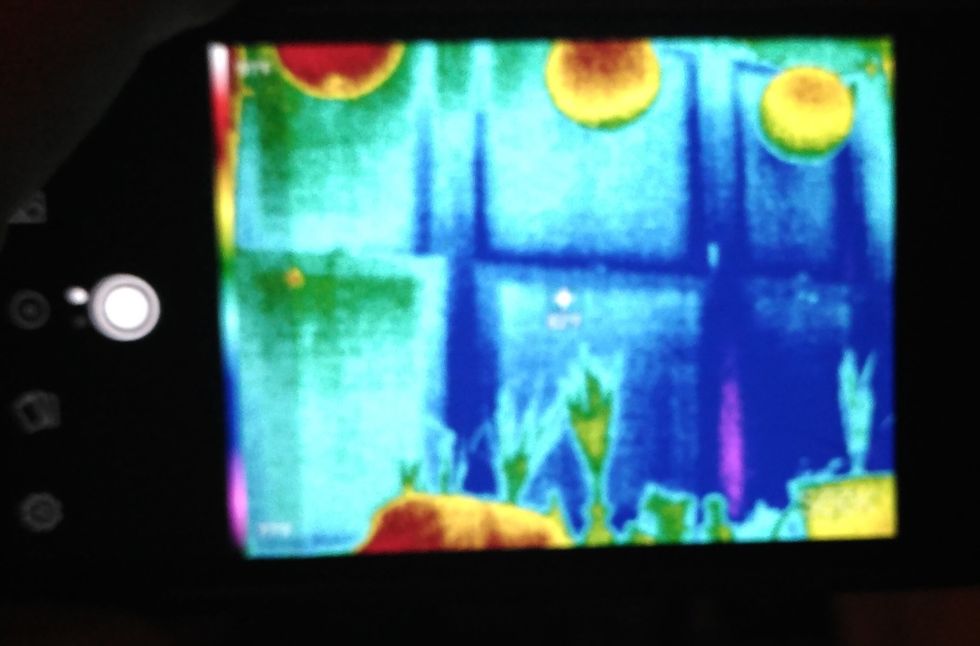 The device is about the thickness of a finger, with a tiny lens on the back. You plug the device in so it faces away from you, download the Seek Thermal app and register the device. Mine then started up almost immediately with a series of tiny clicks. This is the camera taking instant readings—which you can see on your smartphone screen—and is called Spot Mode.