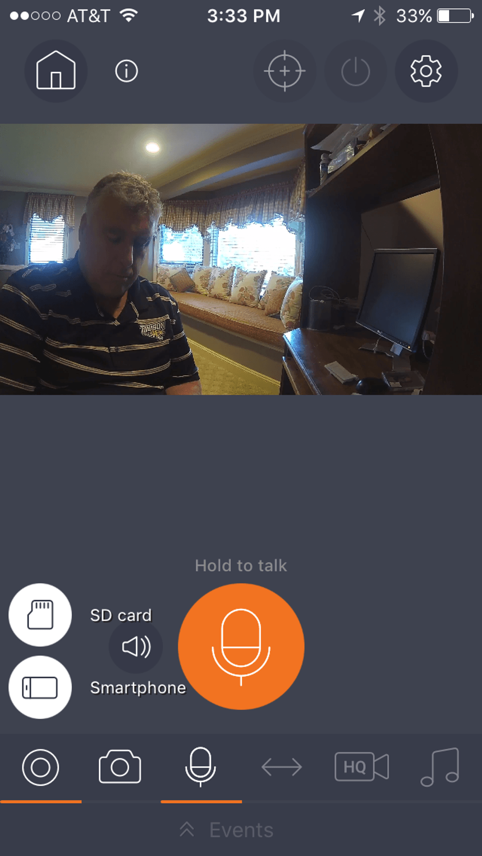 SmartCam A1 security camera also supports two-way communication. As we mentioned above, using the mobile app, you can press the microphone icon and talk to whoever is in the room through the camera's built in microphone like a walkie-talkie. The sound is crisp but there is a three second delay. When you're finished speaking, take your finger off the microphone icon to hear someone talking back to you.