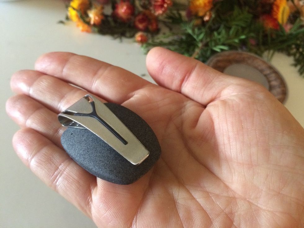 Spire is a small palm sized object made to look like a river stone. The weight is lighter, but the look is right on the nose: gray, oddly shaped. I felt like I could toss Spire across a pond and watch it skip. (Just the thought of that was oddly calming too.) On the front is a metal clip—which attaches to the waistband of your pants, or the center of your bra. The key is the stone side is always in contact with your skin to read the expansion of your chest and belly as you breathe.