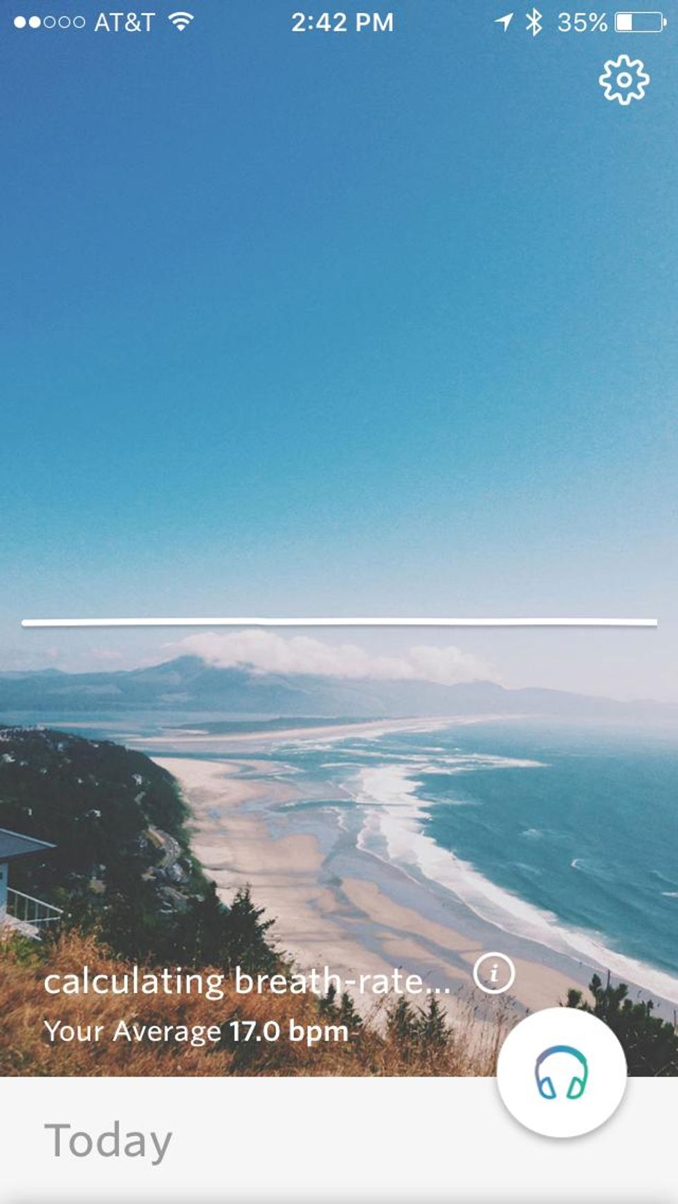 When you launch the app, once Spire is in place, the app starts to read your breaths per minute, noting your average. You can actually watch the visualization of your breathing on your smart phone screen—the rising and falling of your body, and even movement. This tracks your average breath—and from there, and from deviations, Spire can read your state of mine.