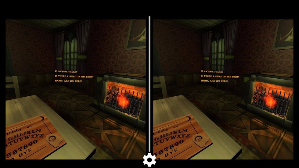 Daniel Scarpelli's Spirit Board VR is available on iOS and Android for Cardboard and compatible headsets. The game invites you to summon spirits through an Ouija board and learn about their motivations. The description recommends a Swivel chair since you'll likely be tempted to make sure nothing's behind you, but you only have to turn a little to go between the questions and board. The setting, Malthus Manor, has all the elements of a classic haunted house and by looking an the appropriate text, you welcome a spirit into the manor and get to ask them questions.