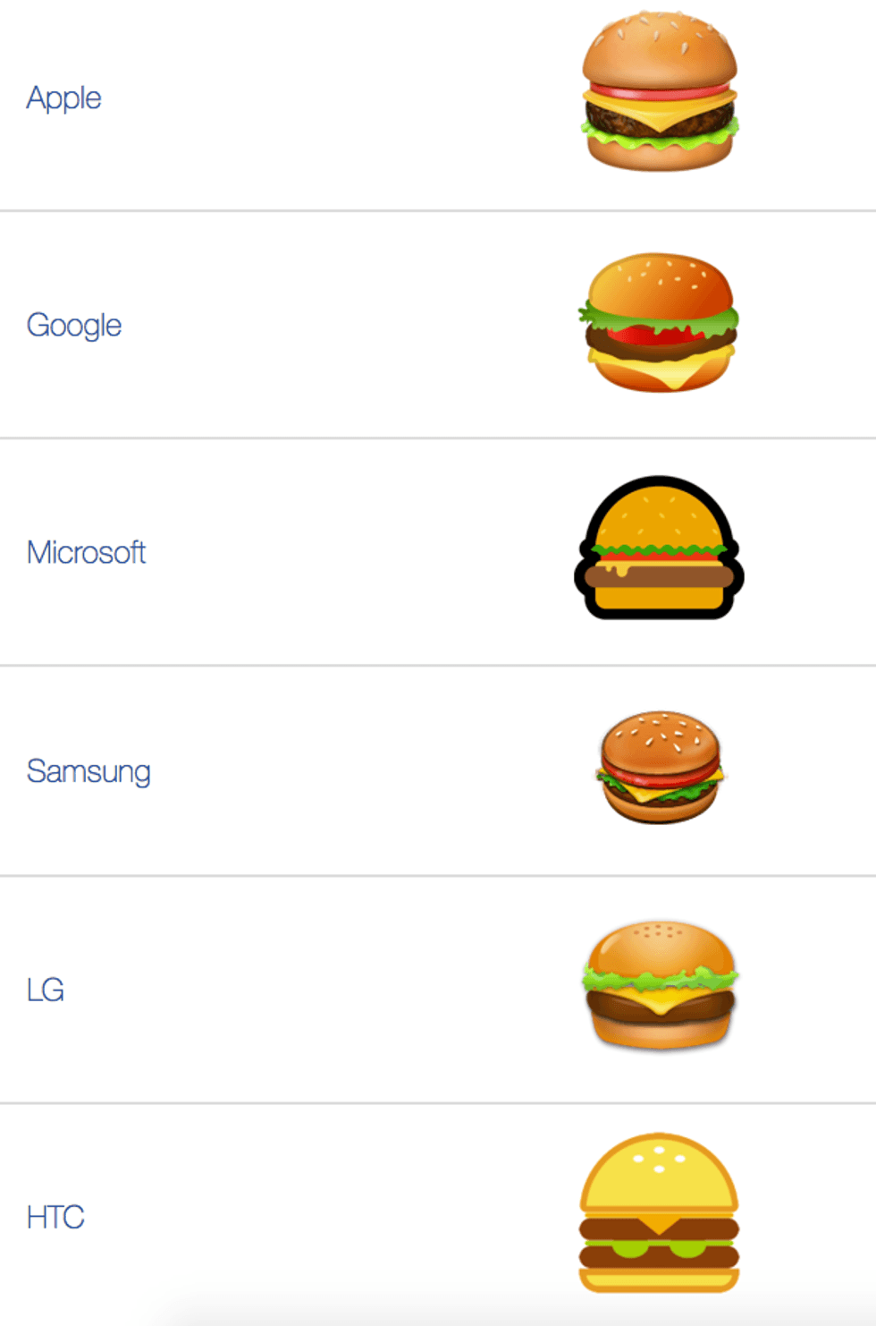 So much cannot be said for the maniacs at Samsung, who inexplicably order their burger emoji bun-tomato-cheese-lettuce-meat-bun. When Samsung makes a burger, it puts cheese between the tomato and the lettuce. Madness.