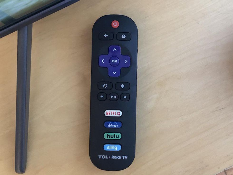 The set came with a small remote with fewer buttons than I would have liked. Apple TV is an option on the Roku, but if you're a wired in, dedicated Apple household you're going to need to physically add the actual Apple TV to one of the four HDMI ports on the TV set.