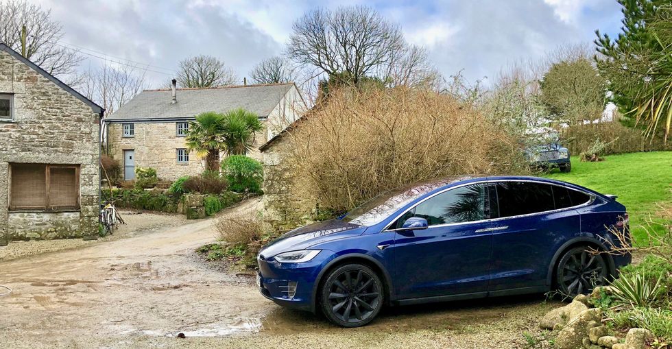 I'm on the A30, approaching the border where Devon becomes Cornwall in the south-west of England. I left London this morning in a Tesla Model X 100D. After stopping for breakfast and electricity at a countryside hotel, it's time for a late lunch and a second refill before I head to Helston and the southernmost tip of the United Kingdom.