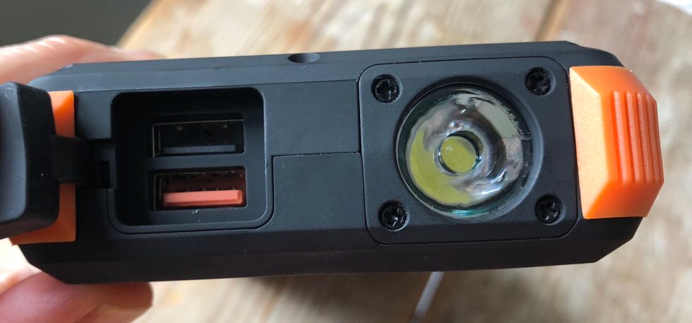 As with any device you might need on a camping trip or during a power outage, there's a flashlight in the Bigfoot, an LED light that operates by pushing and holding the power button. The light isn't going to give you enough to lantern up a camp site — but it's definitely a solid enough beam to find something on a dark night.