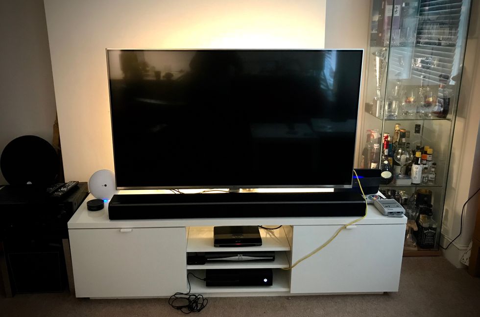 So that's stage one complete. I now have a cool-looking TV backlight made from a previously unused lamp and $2 bulb, controlled remotely via my iPhone. I could even schedule the light to come on each evening while on holiday to make it look like the house is occupied and deter burglars.