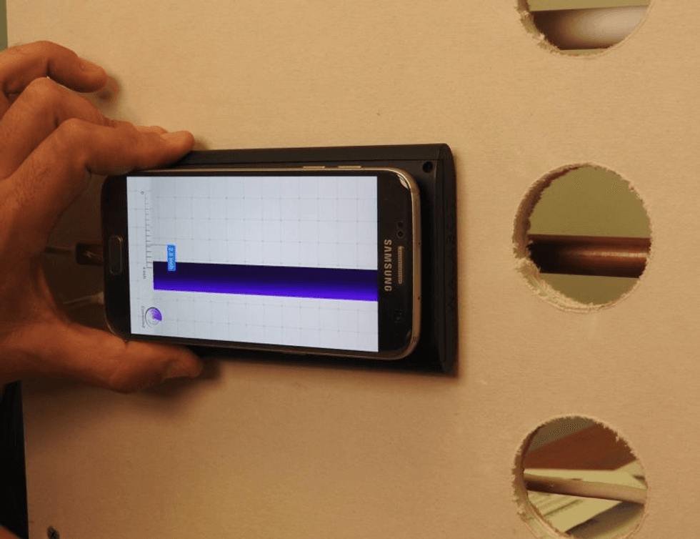 The Walabot itself is about the size of a large Android phone, which it should be noted, is the only mobile OS currently supported by the device. Using a reusable and washable sticky gel-pad, you attach your phone to the Walabot, and plug the device into the solitary USB port. The app can then detect what is behind sections of wall you're scanning, up to four inches deep. Although it only works on drywall and cement, it is surprisingly effective at picking up studs, wires, pipes, and even movement within the walls.