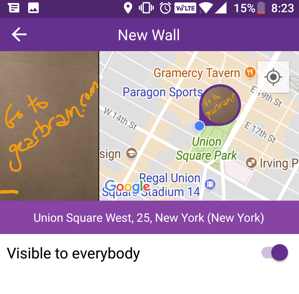 Finally, publish your image through the app. Options all you to share the message with everyone or just a select few people. You can tag a few friends, sending them a heads-up through the WallaMe app, or invite people from your contacts. Just remember, if you do choose to make the message public, anybody with the app can see it.