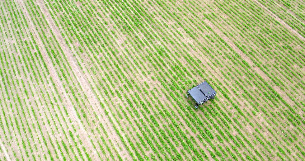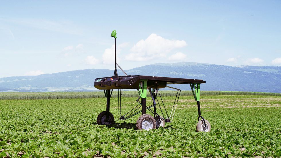 The ecoRobotix robot looks a bit like the Mars rover — small and solar powered, but with grocery cart wheels and a flat bed back. The autonomous bot is also super lightweight — weighing in at only 130 kilograms, the ecoRobotix is designed so it won't pack down the soil or ruin the land. It'll also be 30 percent less expensive than usual treatments, the company claims, and of course, the entire robot is smartphone controlled.