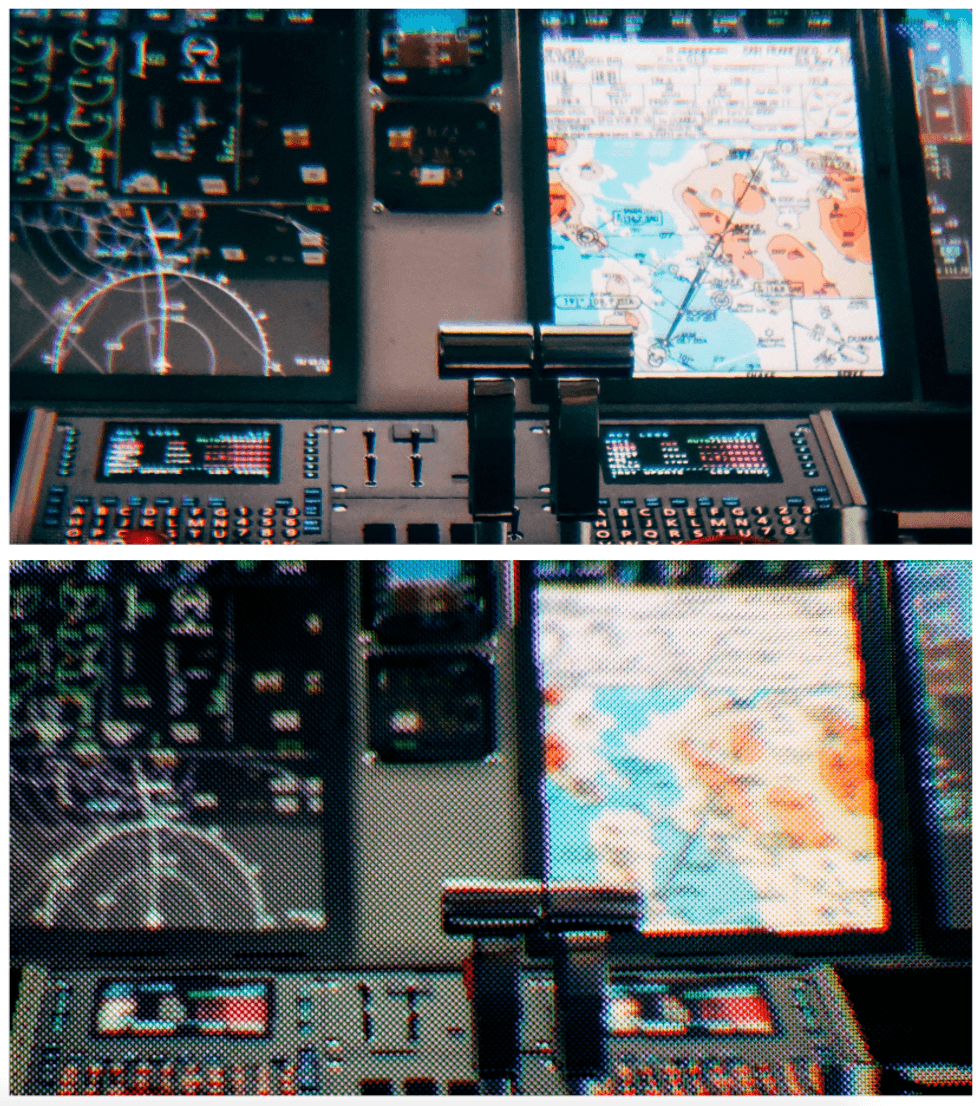 For example, it shows the entire virtual cockpit of an airliner during a flight simulation VR experience. Just as any other VR headset would, this first display shows the whole scene, but not in much detail. If you try to focus in on what each dial of the dashboard says, you'll be greeted by a blurry and pixelated mess.