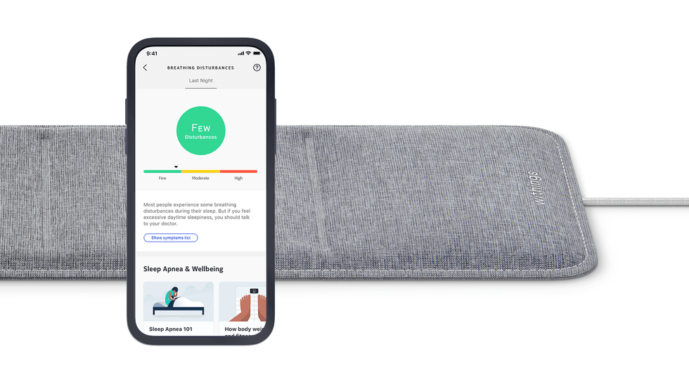 The Withings Sleep, a non-intrusive sleep tracking mat which sits below the user's bedsheets, has been updated to detect breathing disturbances.