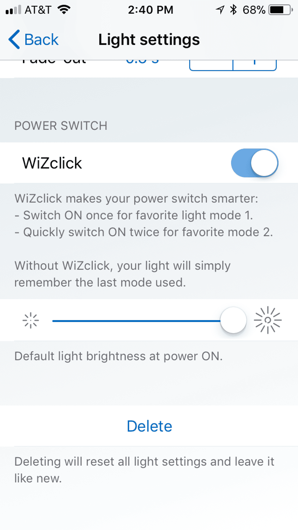 Wiz offers Wizclick which makes your light switch, effectively smarter, with setup done through the mobile app. Here is how it works. First, go to your Wiz app and make sure your Wizclick power switch is enabled. Then, turn on your light with the Wiz bulb. Once on, Wiz recognizes it as the first favorite light mode. If you turn the light off and then back on a second time within 5 seconds, the second favorite mode is also recognized on the second button of the remote. If your favorite two buttons have defined light modes, these two light modes will be recognized in the room with Wiz Lights just by turning the light switch on or off. We think this is an interesting feature for the individual who doesn't mind using their light switch to turn their lights on and off.