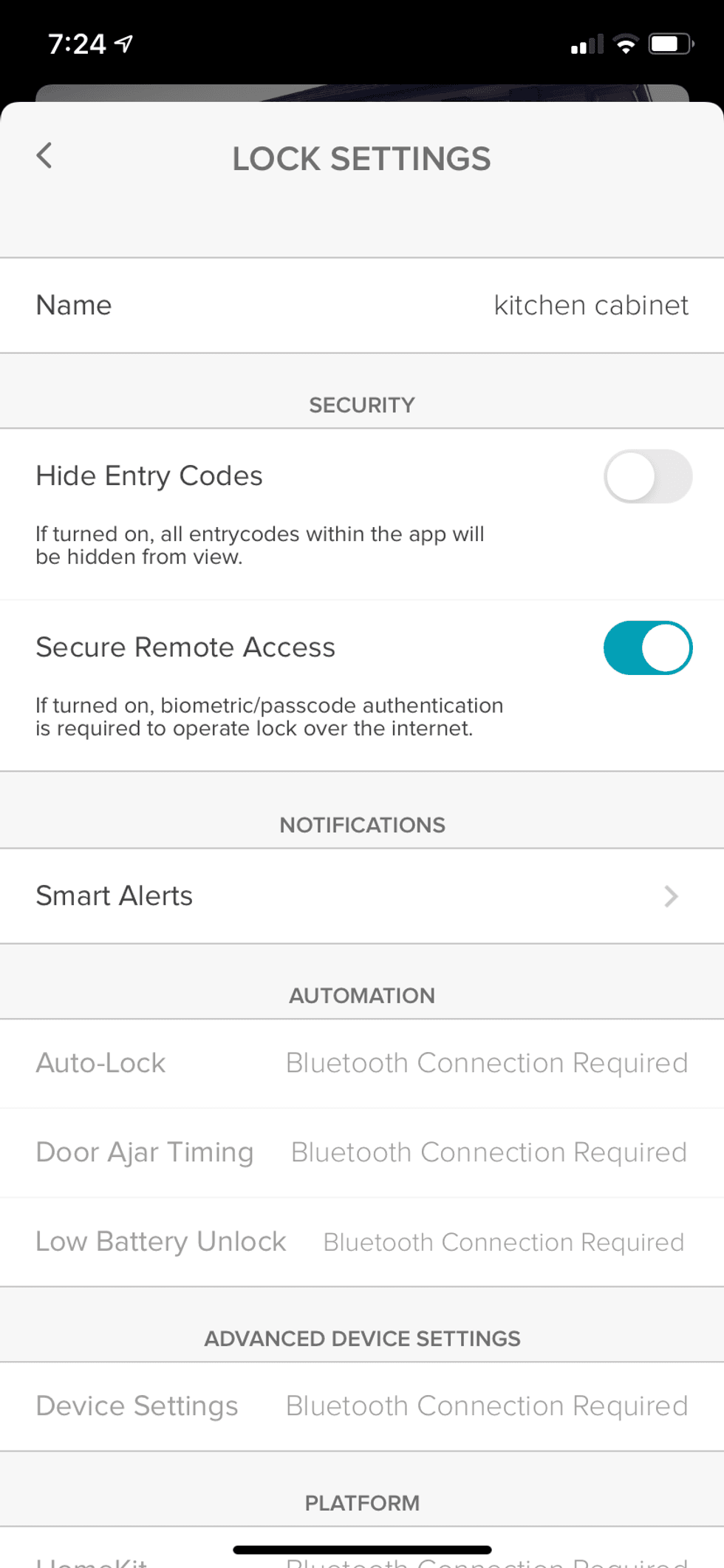 During testing, we did find the Bluetooth connectivity spotty unless we were right next to the lock. When we used the Connect Bridge, however, connectivity was fine. Also, keep in mind the posts holding the lock are made of plastic. And while they seemed strong enough to prevent little children from opening the cabinets, an adult might be able to rip open the cabinet. You might want to consider bolstering the lock with screws that are provided.